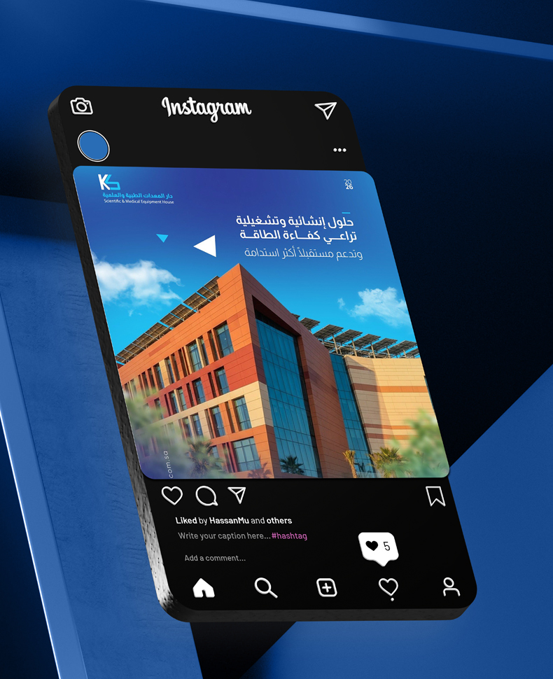 قدّمنا إدارة متكاملة لحسابات دار المعدات الطبية ركّزنا على بناء حضور رقمي قوي ومؤثر يعكس احترافية العلامة ركّزنا على بناء حضور رقمي قوي ومؤثر يعكس احترافية العلامة وصنعنا محتوى إبداعي يجذب الانتباه ويعزز ثقة العملاء