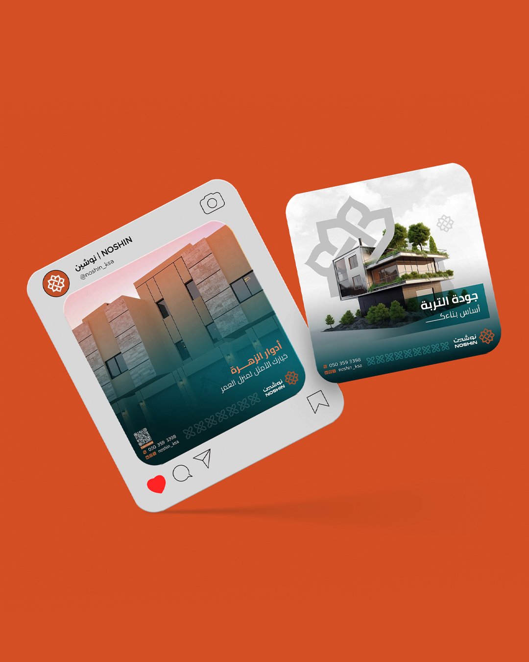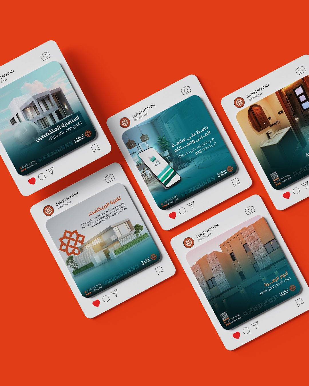 مجموعة من تصاميم السوشال ميديا لحساب نوشين العقاري، بتصاميم إبداعية تعكس الجانب العقاري وبمحتوى يخدم الفئة المستهدفة الباحثة عن عقارات مما يعكس مستهدفات الحساب في رفع مستوى الوعي عن العقارات ،ولتكون أحد محركات البحث في مجال التطوير العقاري.