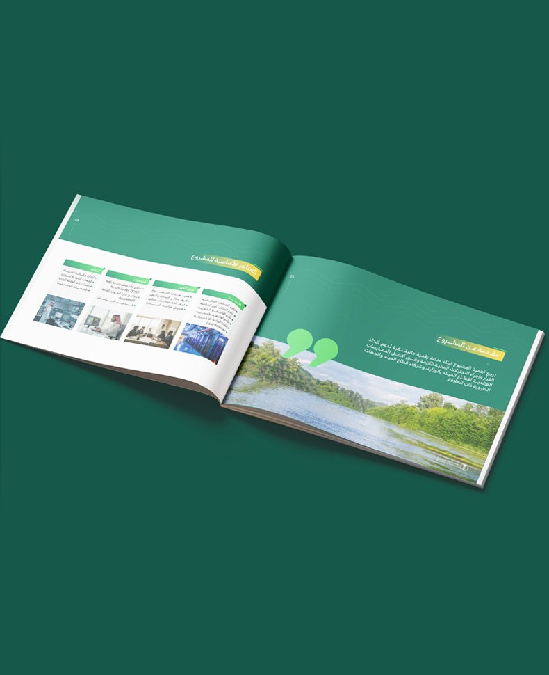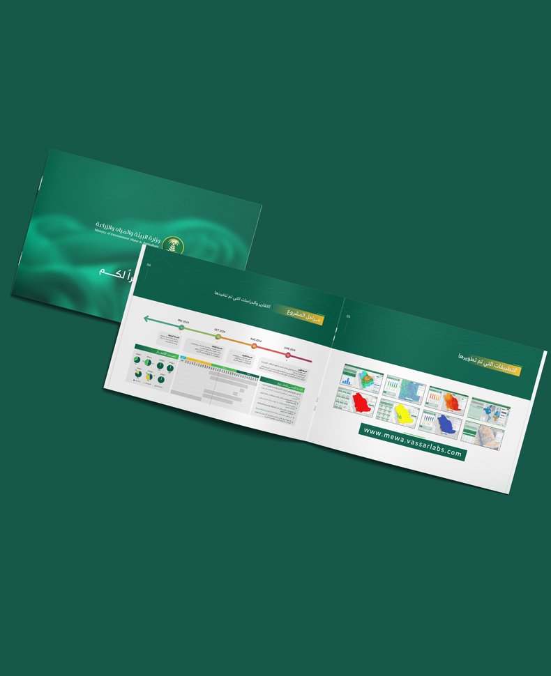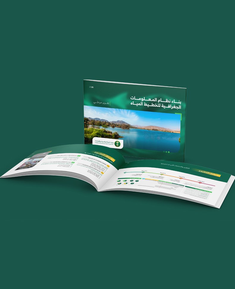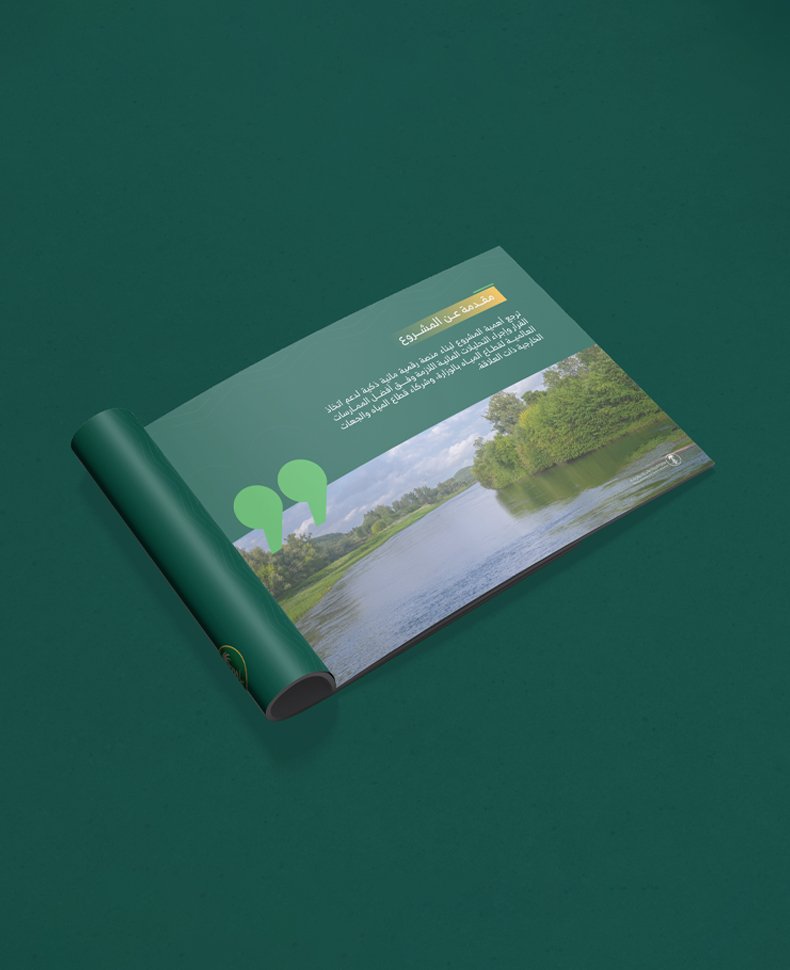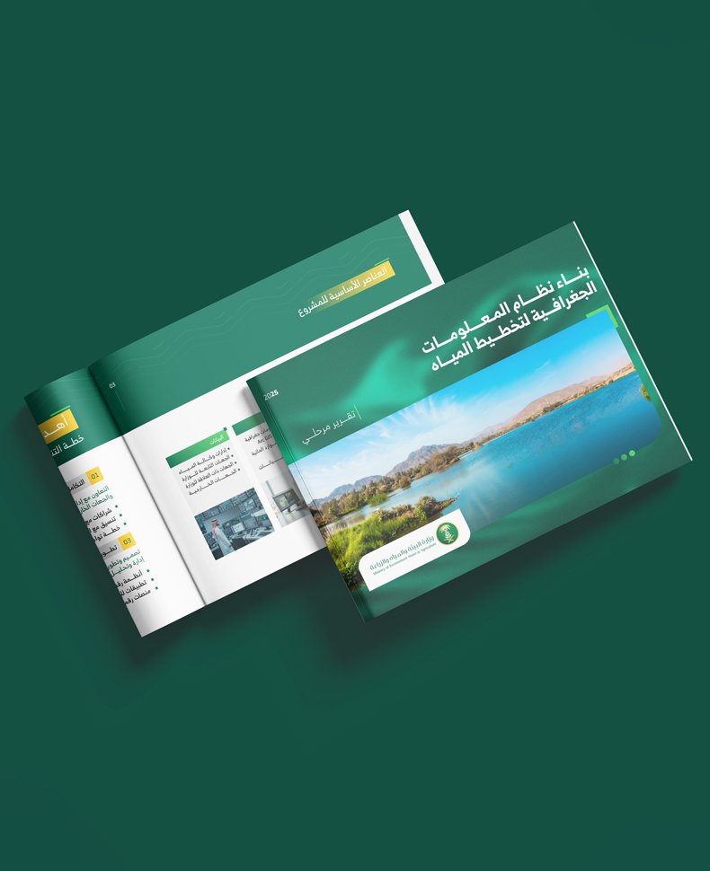 تصميم تقرير مؤسسي احترافي لصالح وزارة البيئة والمياه والزراعة، يعرض مشروعًا حيويًا بطريقة بصرية منظمة وجذابة.