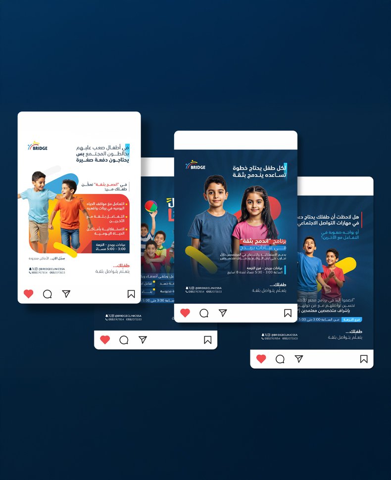 تصاميم إنفوجرافيك احترافية لعيادات بريدج تعكس الهوية البصرية وتدعم المحتوى التسويقي وتسهم في رفع جودة التواصل البصري مع الجمهور.